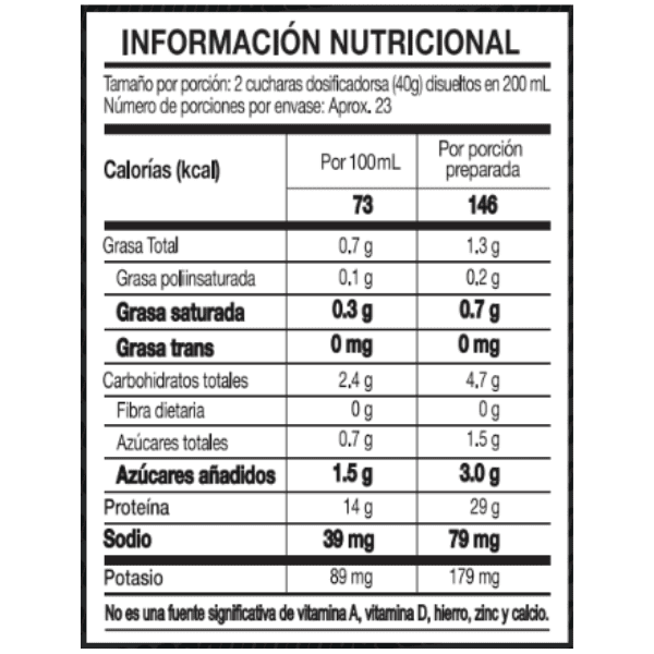 Su composición combina rápida solubilidad, digestibilidad eficiente y un sabor gourmet a vainilla que facilita su consumo en diferentes momentos del día. Es un producto desarrollado bajo estándares de calidad, ideal para quienes buscan una opción práctica y confiable para complementar su ingesta diaria de proteínas en el marco de una dieta variada y balanceada.
